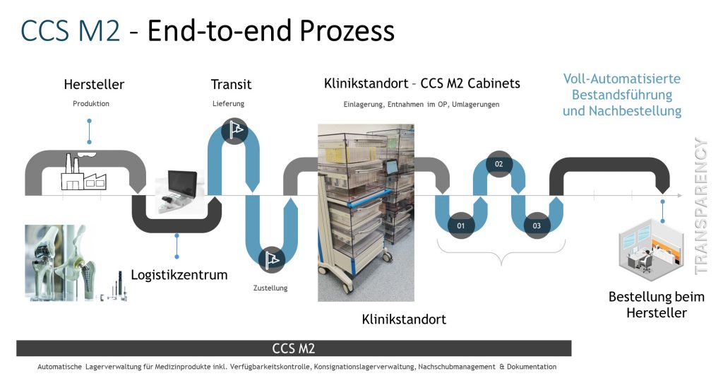 Die Lösung CCS M2 ermöglicht eine zuverlässige, nachvollziehbare sowie transparente Lagerhaltung und realisiert Nachbestellungen wichtiger medizinischer Produkte in Echtzeit.